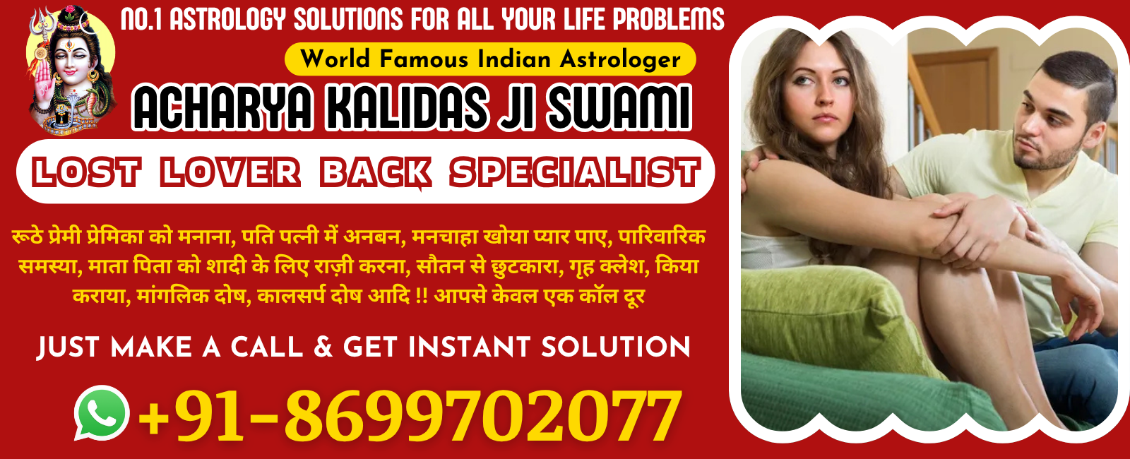 एक कॉल आपके जीवन को हमेशा के लिए बदल सकता है, आशा मत खोना और हार मत मानो! सिद्ध और अनुभवी ज्योतिषी, कॉल या व्हाट्सएप पर चैट करें. पारिवारिक समस्या. पति पत्नी में अनबन. मनचाहा खोया प्यार पाए. क्या आप अपनी हर इच्छा पूरी करना चाहते हैं? बाबा से अपनी हर समस्या का समाधान करवाना चाहते हैं? अब समाधान है बिलकुल आसान। अभी संपर्क कीजिये बाबा जी को और समाधान पाइये बिलकुल निशुल्क आपके विश्वास को टूटने नहीं दूंगा ! जिनका काम अभी तक नही होया वो जरूर फ़ोन करे! बस अब दुःख और नहीं आप किसी भी समस्याओ से परेशान है तो अभी फ़ोन करे घर बैठे समाधान करवाये। लव मैरिज, लव प्रॉब्लम, ग्रह कलेश, पति पत्नी में अनबन, शादी में रूकावट, सौतन व् दुश्मन से छुटकारा, सभी समस्याओ का हल सिर्फ एक फ़ोन कॉल +91-8699702077